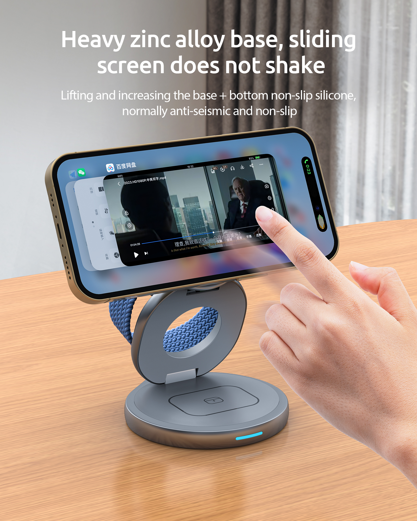Travel and business trip: due to its portability and efficient charging features, the zinc alloy foldable wireless charger is particularly suitable for use during travel and business trips. It can charge cell phones and other devices at any time to avoid affecting work due to insufficient power.
